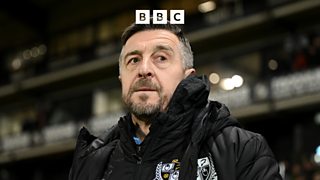 Port Vale manager Jon Brady speaks to Phil Bowers following the 4-0 defeat at Wycombe.