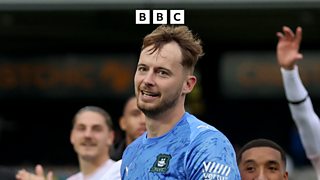 Plymouth Argyle Head Coach Tom Cleverley reacts to 4-0 win over Cardiff