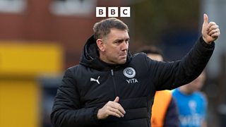 Dave Challinor reacts to Stockport's 2-1 win at Blackpool.