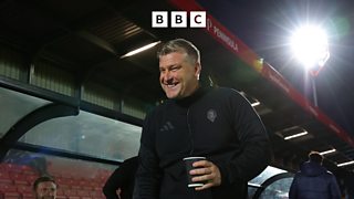 Karl Robinson reacts to Salford's 3-2 loss at Cheltenham.
