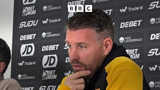 Wolves head coach Rob Edwards discussing transfer policy at his Friday press conference.