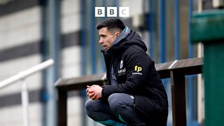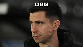 Albion head coach Eric Ramsay reacts following loss at Portsmouth.