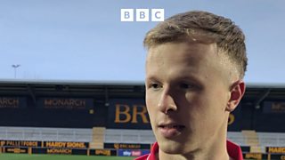 Filip Marschall reacts after Stevenage win 1-0 away to Burton Abion.