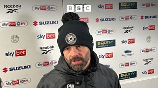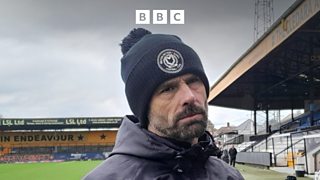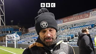 Paul Warne reacts after his MK Dons side beat Harrogate Town 4-1 at home.
