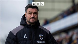 Manager Jackson speaks to BBC's Dave Victor after the 4-2 loss at home against Orient