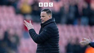 Manager Wellens speaks with BBC's Dave Victor after their 3-1 loss