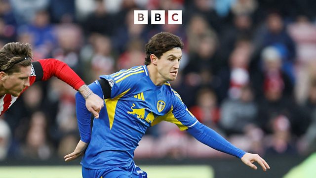 Leeds United midfielder Brenden Aaronson reacts after his assist help the Whites come from behind to earn a 1-1 draw at Sunderland.