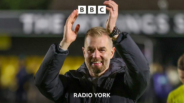 Harrogate Town manager Simon Weaver speaking to Tim Steere after their 2-1 victory at home to Cambridge United. Ending a run of 21 games without a victory.