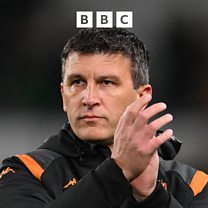 Mike White talking to Hull City head coach Sergej Jakirovic after the Tigers lose at home to Chelsea in the FA Cup.