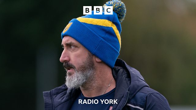 Scarborough Athletic manager Jonathan Greening speaking to Peter Spencer, ahead of their match against Hereford FC.
