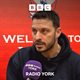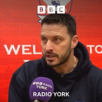 York City first-team coach Gary Elphick speaking to David Ward, ahead of their trip to Morecambe.