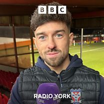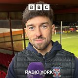 York City goalscorer Alex Newby speaks to David Ward after their 3-0 victory over Aldershot Town.
