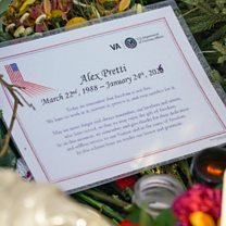 (Photo: A copy of the 'Final Salute' placed at a makeshift memorial for Alex Pretti in south Minneapolis; Credit: Craig Lassig/EPA/Shutterstock)