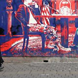 (Photo: Veiled Iranian women walk past an antiUS mural showing a negotiation table; Credit: Abedin Taherkenareh/EPA/Shutterstock)