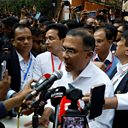 (Photo: Bangladesh Nationalist Party (BNP) Chairman Tarique Rahman speaks with the media after voting, outside a polling station during the national election in Dhaka. Credit: Reuters).