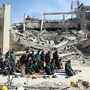 (Photo: Iranians pray next a damaged police station building in central Tehran, Iran. Credit: Abedin Taherkenareh/EPA)