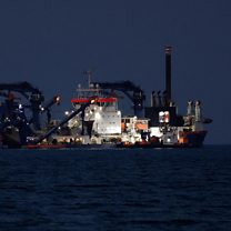 (Picture: A dredger sits anchored as the traffic is down in the Strait of Hormuz. Credit: Reuters/Benoit Tessier)