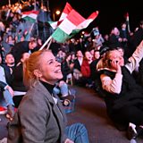 (Photo: Supporters of the Tisza Party celebrate during the party's election night watch event; Credit: Tibor Illyes/EPA/Shutterstock)