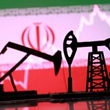 Photo: 3D-printed oil pump jacks, Iranian flag, and a rising stock graph appear in this illustration. Credit: Reuters/Dado Ruvic/Illustration/File Photo