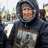Photo: A Ukrainian woman attends a memorial ceremony for fallen servicemen at the Military Cemetery in Kharkiv. Credit: Sergey Kozlov/EPA/Shutterstock.