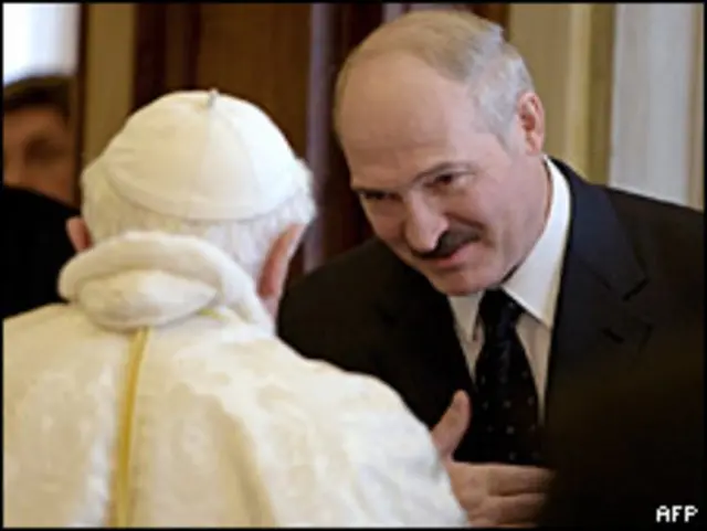 Президент Белоруссии Александр Лукашенко встретился в понедельник в Ватикане с Папой Римским Бенедиктом XVI. Их беседа, как сообщается, продолжалась почти полчаса и была теплой. Сначала они встретились в Тронном зале Ватикана, а потом переместились в личную библиотеку Папы.