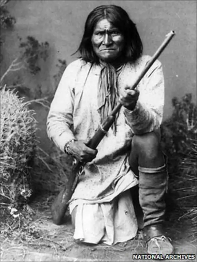 Самая известная фотография Джеронимо относится к 1887 году – на ней вождь смотрит в камеру, сжимая винтовку.
