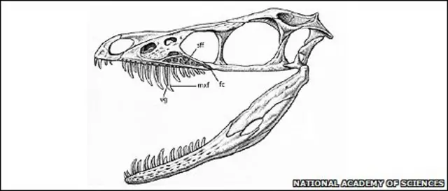Авторы статьи, Дэвид Бернхэм и его коллеги, отмечают также, что в верхней челюсти динозавра имелось особое углубление, в котором могла помещаться железа, вырабатывавшая яд и которое соединялось с основанием зуба длинным каналом.