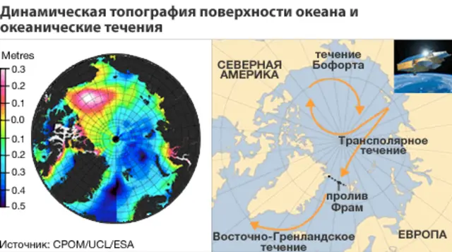 "Нам удалось создать первую полную карту, отражающую динамическую топографию Северного Ледовитого океана. Предыдущие научные спутники не могли передать полную информацию об Арктике из-за траектории их полета. Даже американский искусственный спутник "Айсат" получал информацию до 86 градусов северной широты. "Криосат-2" охватывает территорию до 88 градусов", - поясняет Сеймур Лаксон.