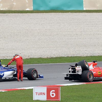 Ferrari's Sebastian Vettel and Williams' Lance Stroll collide on the cool down lap, destroying the German's car. This clip is originally from 5 live Formula 1 on Sunday, 1 October 2017.