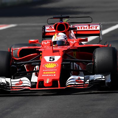 Ferrari's Sebastian Vettel tells his team he is "focused" after a hectic start to the Mexican Grand Prix which saw him collide with his championship rival Lewis Hamiltn.