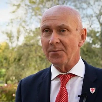 Ian Gwyn Hughes ynghanol dathliadau Cymdeithas Bêl-droed Cymru yn 150 oed