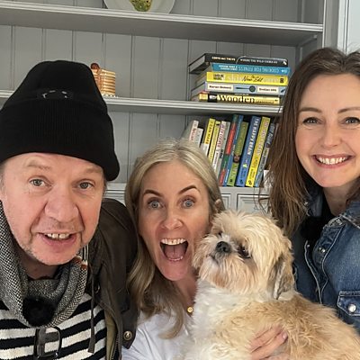 Llŷr Evans a Lisa Gwilym sy'n canu cloch Eleri Siôn ac yn busnesu o amgylch ei chartref.