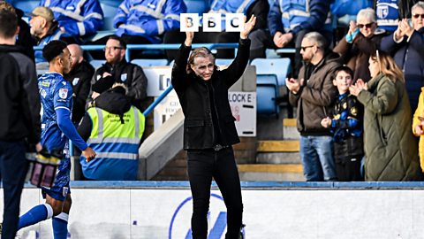 Gillingham manager Gareth Ainsworth reacts to their 3-2 win against Newport County.