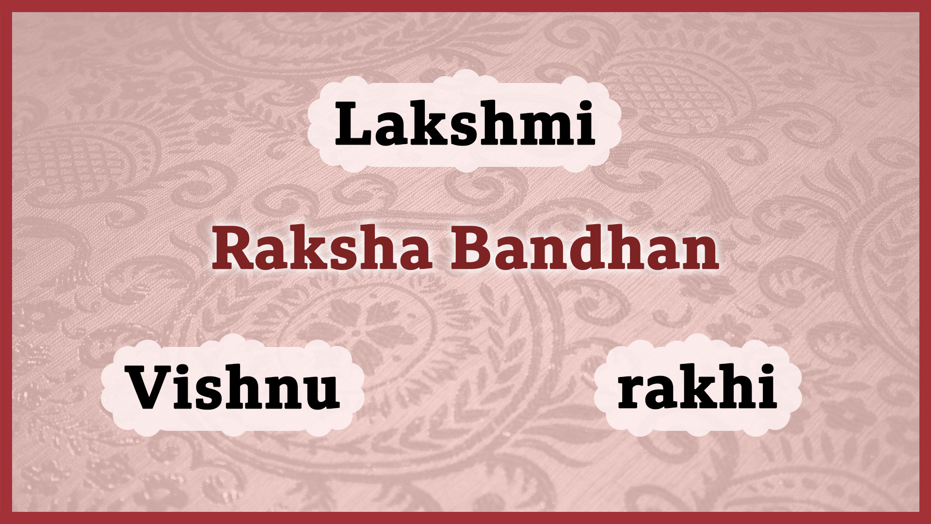 Begin by asking the children about their brothers and sisters and gathering the answers. For example: 1. Who here has a brother or a sister - perhaps one who is with us today? 2. When might we celebrate having a brother or sister…and how? (Birthdays; Christmas; by giving presents; other occasions…) 3. Is it always easy having a brother or sister - are there ever squabbles? Go on to explain that the children are going to watch a short video about a Hindu festival that celebrates brothers and sisters (and refer to the words / names on the image if you wish to).