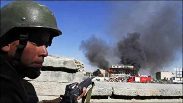 کابل میں بی بی سی کے نامہ نگار کے مطابق انہوں نے وزارت کی عمارتوں کے نزدیک سلسلہ وار دھماکوں کے بعد گولیوں کی آوازیں بھی سنیں۔ افغان سکیورٹی فورسز نے قریبی ہوٹل کی چھت سے حملہ آوروں پر فائرنگ کی جو آس پاس کی عمارتوں پر موجود تھے۔