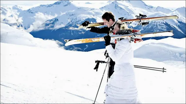 ،تصویر کا کیپشنسارا دراؤن اور ان کے ہونے والے شوہر نے شادی کی تقریب کینیڈا کے برِٹِش کولمبیا کے علاقے میں برفیلے پہاڑوں پر انجام دی