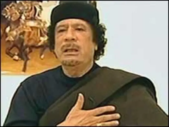 سرکاری ٹی وی پر خطاب کرتے ہوئے معمر قذافی نے کہا تھا کہ ان کو زبردستی ملک سے نہیں نکالا جا سکتا۔ ’امن کے لیے دروازے کھلے ہیں۔ تم لوگوں نے جارحیت کی ہے۔ ہم تمہارے ساتھ مذاکرات کریں گے۔ فرانس، برطانیہ، امریکہ آؤ ہم تمہارے ساتھ مذاکرات کرتے ہیں۔ تم کیوں ہم پر حملے کر رہے ہو؟‘