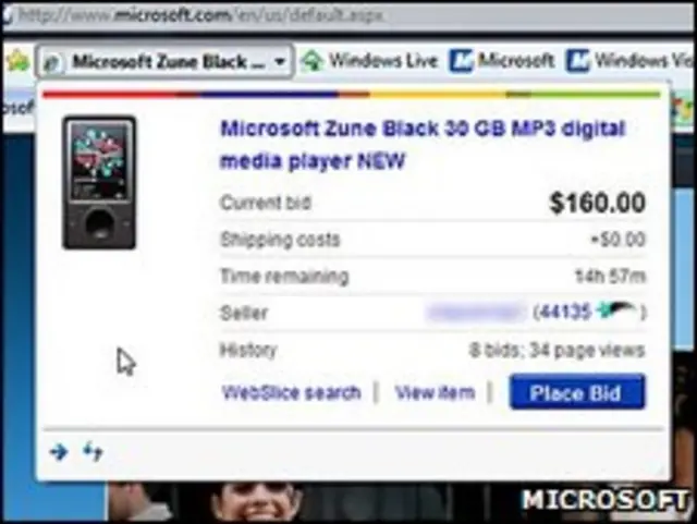 IE8 còn có thể theo dõi những tin tức mới nhất, các vụ bán đấu giá trên eBay, dự báo thời tiết và các bài blog mới ra nhờ một tính năng gọi là Web Slice, mà về cơ bản là việc dán thêm các nhãn trên thanh công cụ.