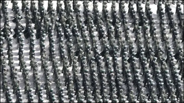 Phóng viên BBC ở Tân Cương nói quân lính đã hành quân trong suốt buổi sáng thứ Tư, ngày 08/07.