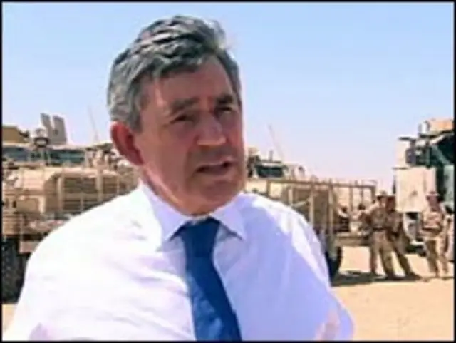 Phái viên đài chúng tôi nói rằng Thủ tướng Brown có mặt tại Afghanistan để "dọn đường cho binh sĩ Anh được huy động đến đây" với mục đích thúc đẩy nhanh chóng thế liên hiệp giữa binh sĩ và cảnh sát Afghanistan.”