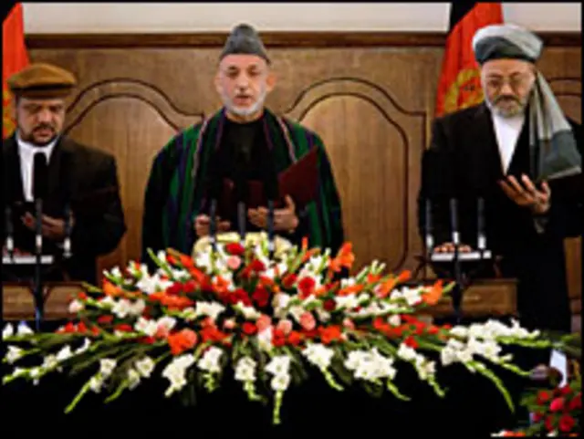 Trong bài diễn văn nhậm chức, ông Karzai nói ông sẽ dẹp tham nhũng và xâu dựng lực lượng để thay thế cho quân đội nước ngoài trong vòng 5 năm.