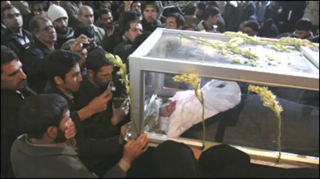 Trước đó hàng chục nghìn người đã tham dự lễ đưa tiễn giáo sỹ cấp tiến này về nơi an nghỉ tại thánh địa Qom.