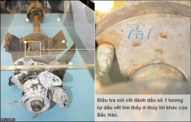 Các điều tra viên nói họ phát hiện mảnh xác của ngư lôi tại đáy biển. Xác này có hàng chữ rất giống với lối in chữ của Bắc Hàn.